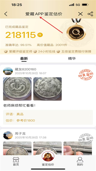 4、鑒定估價板塊,展藏品鑒定數據,準確率99.51,有高價值藏品20011件,可查看藏友鑒定結果及估價。