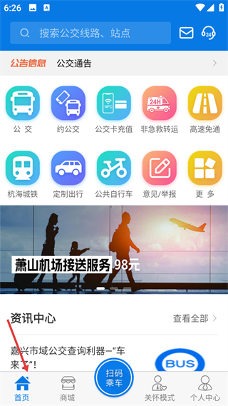2、首頁整合多類出行服務入口,含資訊與增值服務,是本地交通服務的集中展示與功能訪問頁,覆蓋公交等出行場景。