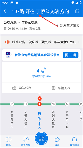 3、自由選擇公交候車地點,一鍵切換公交行車方向。界面風格清新簡約,清晰易懂,一用就會。