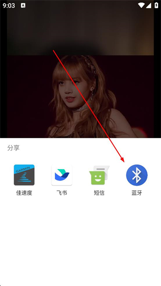 2、在對應內容頁面點擊分享按鈕,選擇佳藍牙等方式,將相關內容分享給他人,完成分享操作后可返回主界面繼續使用其他功能。