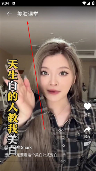 4、點擊文章進入美膚課堂頁面,觀看對應的美妝護膚視頻,可對視頻進行點贊轉發操作,獲取實用的護膚美妝技巧,提升相關知識儲備。