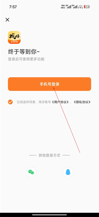 2、登錄頁面提供手機號登錄、本機號碼一鍵登錄等方式,登錄前需勾選同意相關協議,也有其他登錄方式可選。