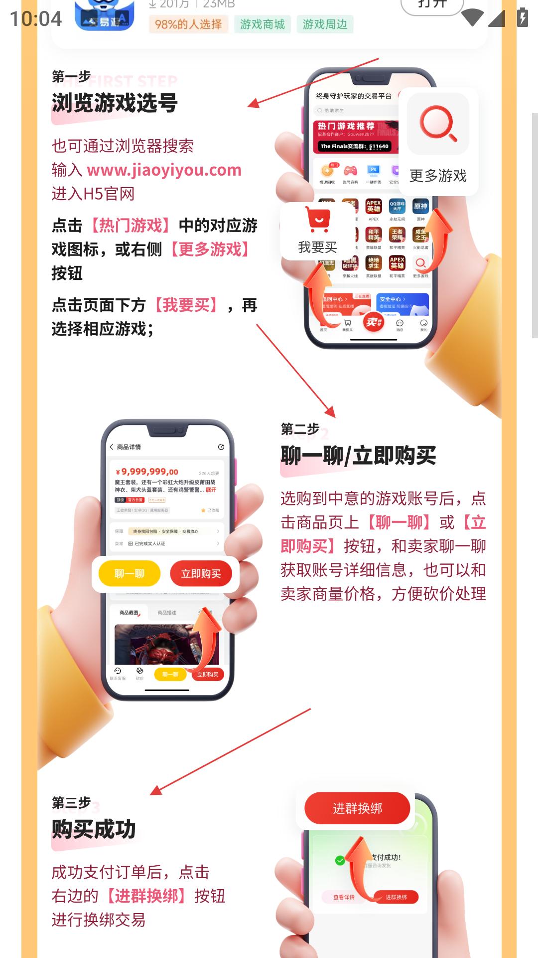 交易游app構建了完善的游戲交易生態,能夠全面瀏覽各類游戲的賬戶信息,輕松獲取豐富多樣的游戲禮包,安全便捷地完成賬戶買賣等多元功能,提供專業可靠的售后支持體系,誠邀廣大游戲愛好者立即下載體驗,開啟便捷高效的游戲交易之旅,享受前所未有的優質服務。