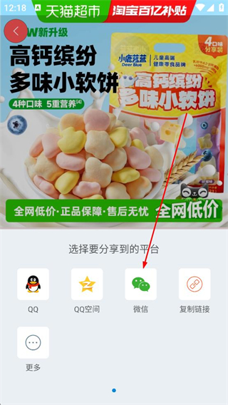 4、在分享界面中選擇微信平臺選項,可將該商品信息分享給微信中的聯系人。