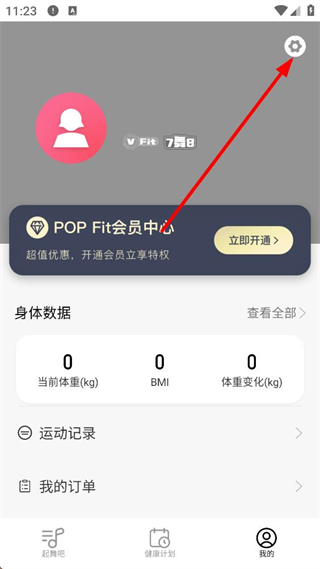 2、popfit熱力燃脂個人中心,能看到會員中心、身體數據等,方便查看健康數據,開通會員享特權。