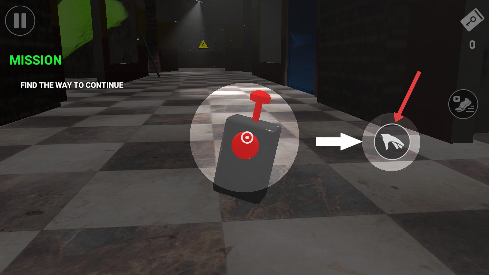 2、進入游戲后,在走廊場景中會看到帶有紅色部件的裝置,點擊對應手部圖標,可與裝置互動,推進游戲進程。