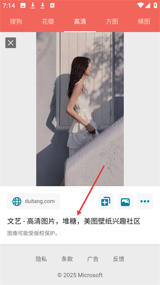 3、圖片詳情板塊,展示高清文藝圖,來源堆.糖社區,提示版權保護,有網頁跳轉功能。