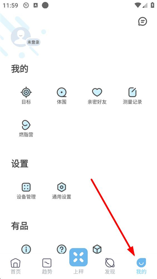 3、點擊底部我的選項,進入個人中心,可設置目標、體圍,管理親密好友、測量記錄等,還有設備管理、通用設置等功能入口,方便個性化管理應用。