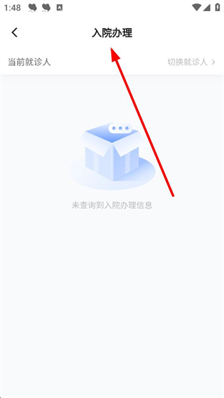 4、進入入院辦理界面,可查看當前就診人的入院辦理信息,若未查詢到可切換就診人,辦理入院相關手續。