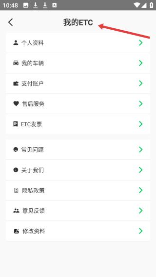 3、點擊我的ETC管理頁,羅列個人資料、車輛等選項,涵蓋支付、售后等方面,全方位滿足ETC相關管理需求。