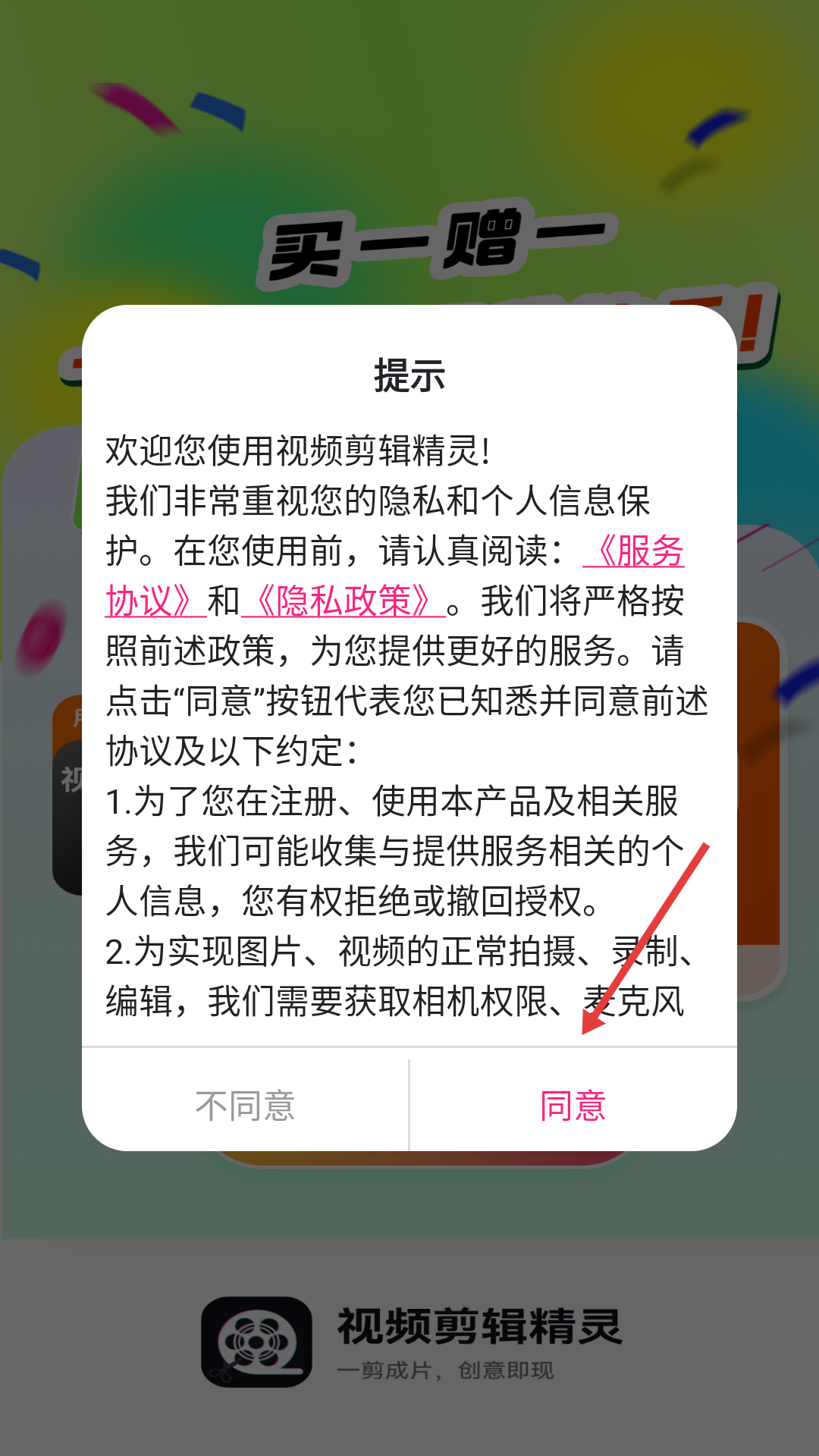 1、下載安裝完成后進入,需在提示界面點擊同意,接受服務協議和隱私政策后進入應用。