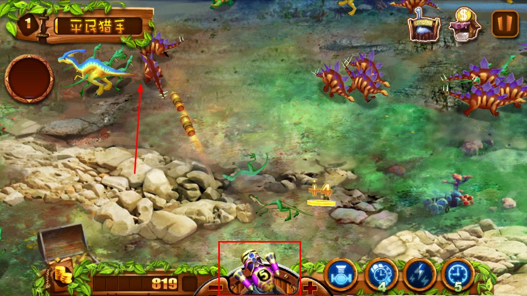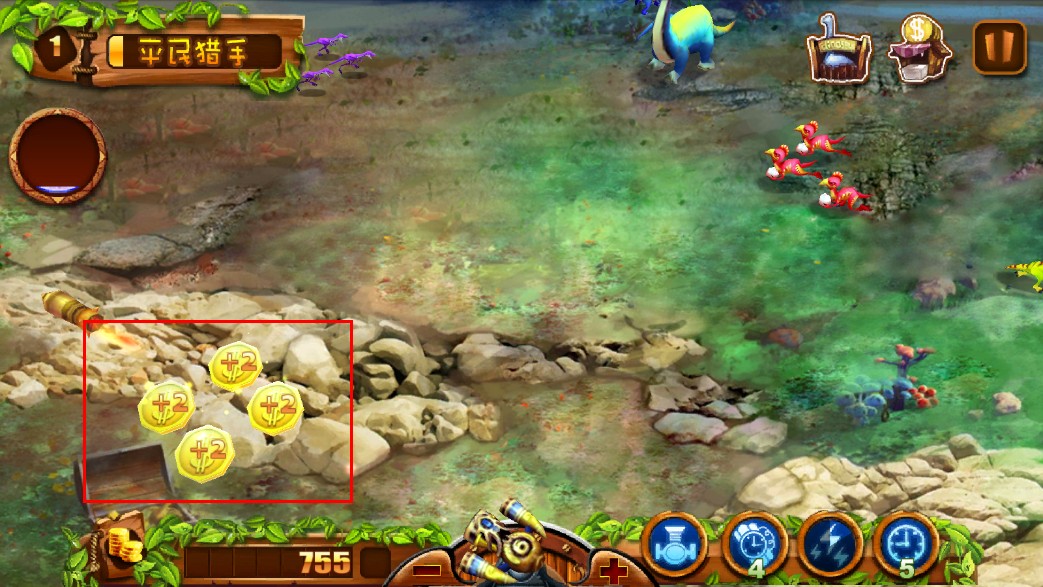 2、操控武器發射,瞄準恐龍進行攻擊,擊中恐龍可推進游戲進程,獲取相應獎勵。