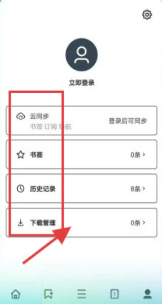 3、個人中心里,有云同步,書簽、歷史記錄,下載管理等功能,登錄后可實現云同步。