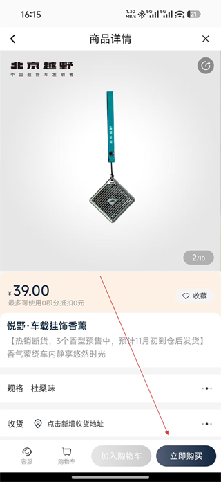 4、在商品詳情頁,查看商品的價格和規格信息,點擊立即購買按鈕,進入商品的購買流程。