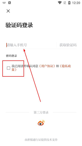1、打開軟件進入驗證碼登錄頁面,填寫手機號并勾選協議,點擊獲取驗證碼后填入對應框,完成賬號登錄。