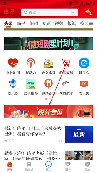 2、登錄成功后進入首頁,找到積分專區入口,點擊進入積分頁面,瀏覽可兌換的商品及服務列表。