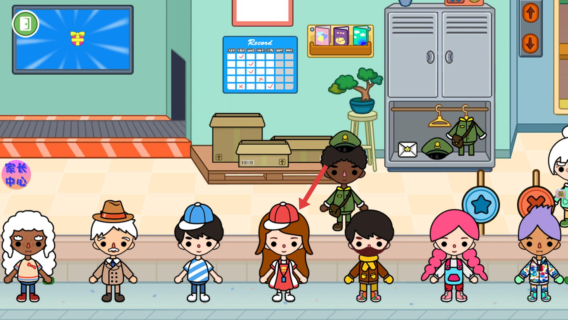 2、進入場景后,可看到排列的角色,選擇心儀的角色,與場景中的其他元素,如儲物柜、日歷等進行互動,推進游戲進程。