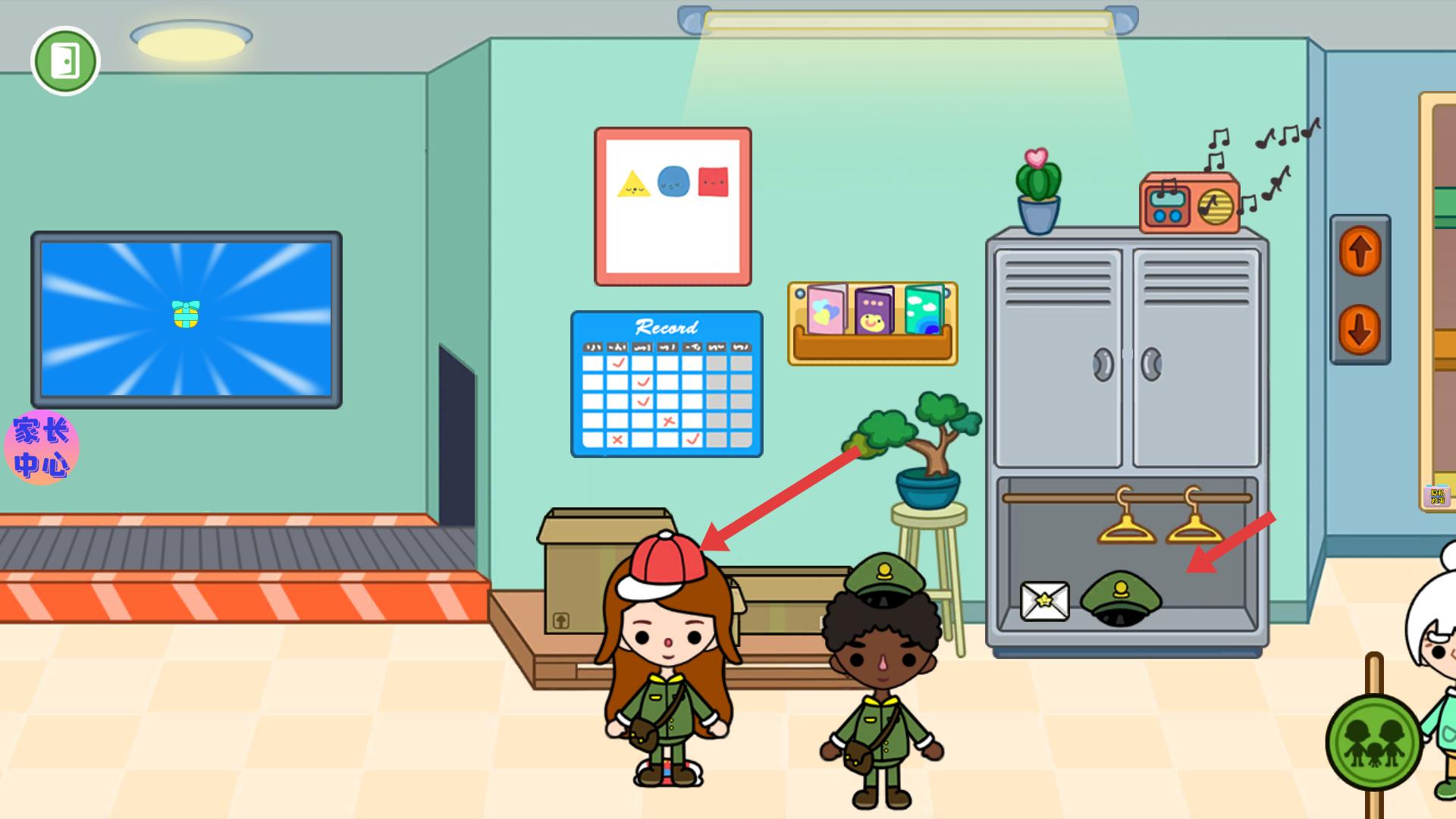 3、操控角色靠近儲物柜,從中選取綠色帽子等物品,為角色進行裝扮,同時留意場景中的其他可互動道具,豐富角色形象與游戲體驗。