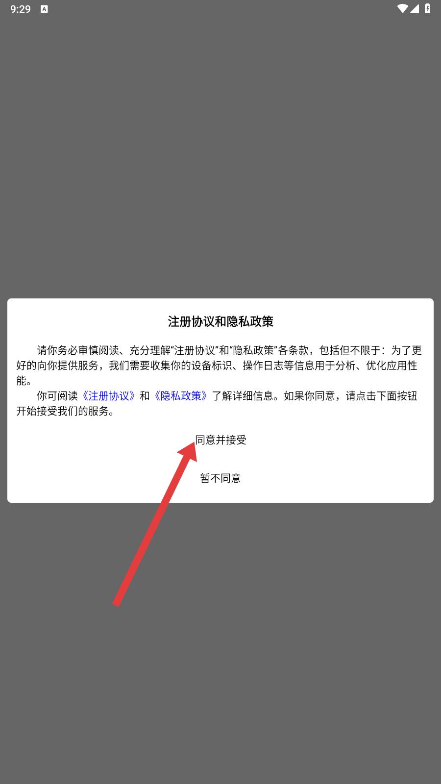 1、進入軟件之后,會跳出服務協議,需要認真閱讀軟件給出的建議后點擊同意并繼續下一步。