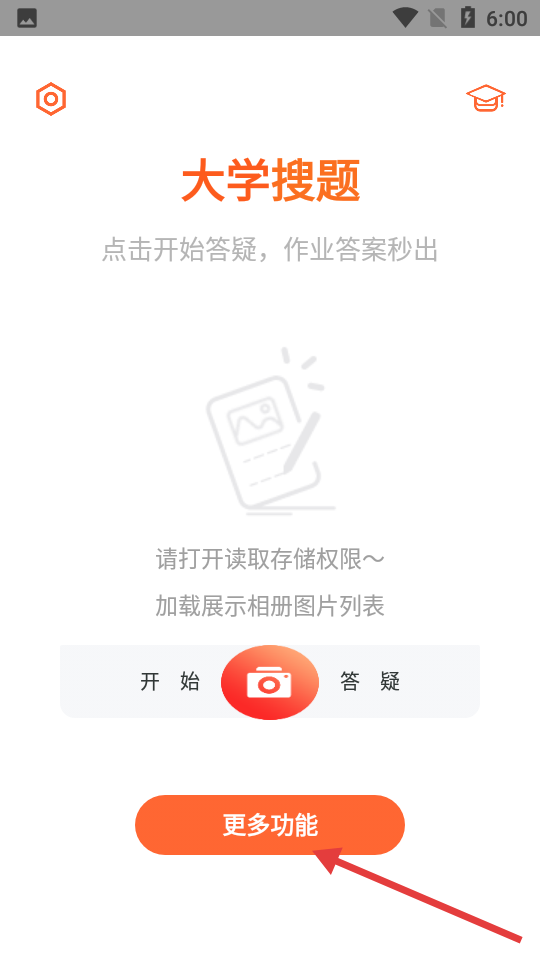 1、點擊首頁醒目提示開啟讀取存儲權限,便于展示相冊圖片,點擊開始答疑可秒獲作業,答案更多功能藏驚喜。