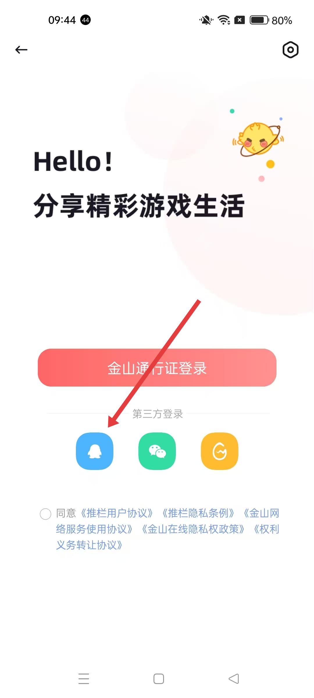 3、登錄頁面,可選擇金山通行證登錄,也可選擇第三方登錄,如QQ、微信等,完成賬號登錄操作。