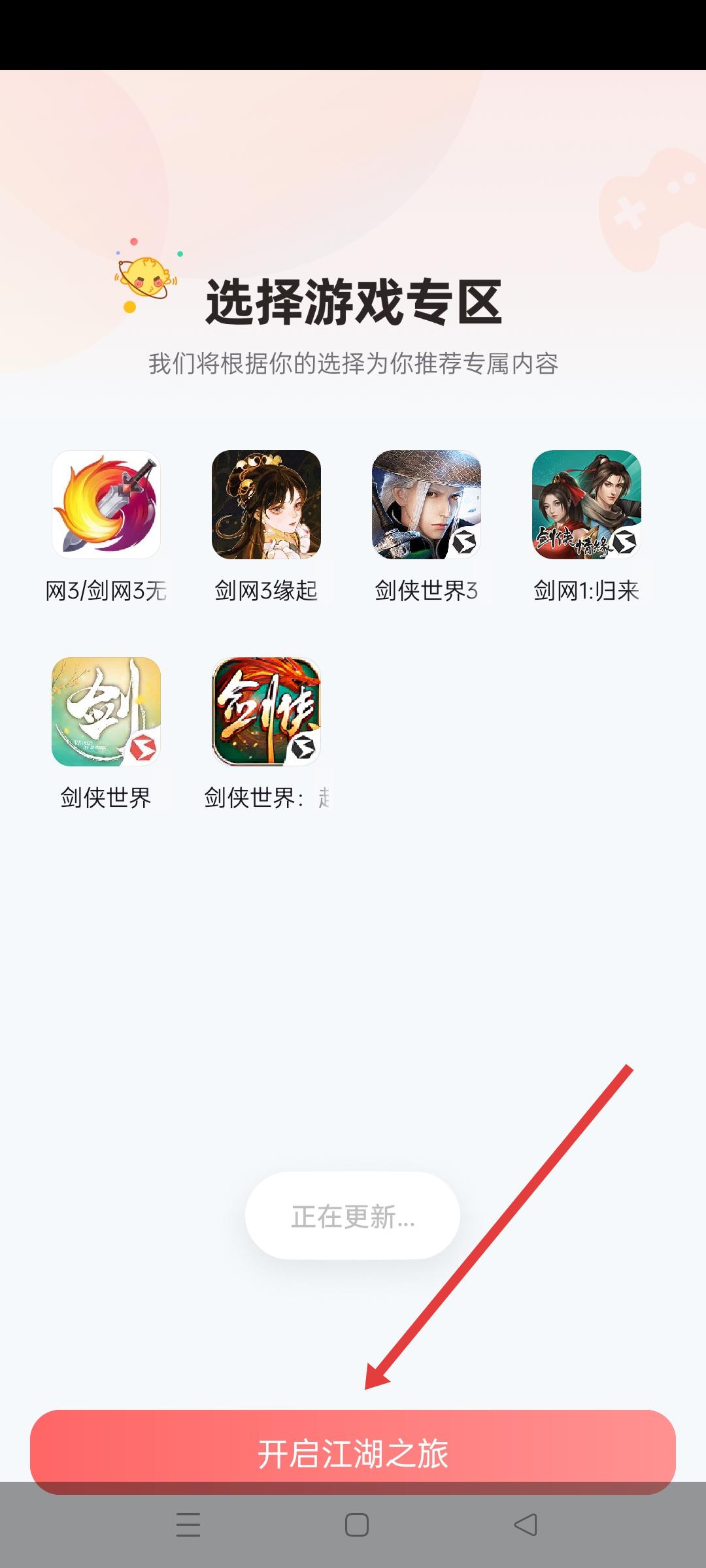 1、進入選擇游戲專區頁面,可看到網3、劍網3無、劍網3緣起等多個游戲選項,選擇后點擊開啟江湖之旅,開啟游戲探索。