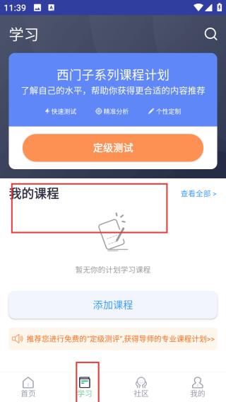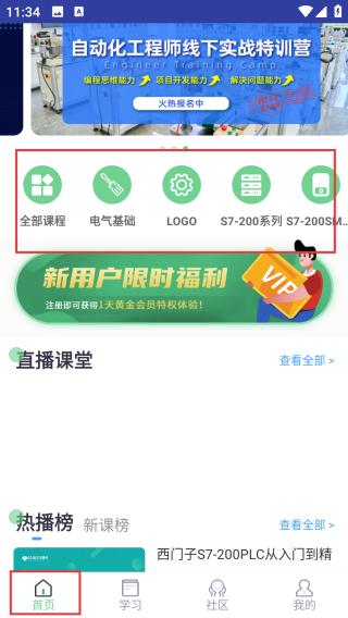 2、點擊底部導航欄學習選項,進入學習界面,頂部是西門子系列課程計劃板塊。