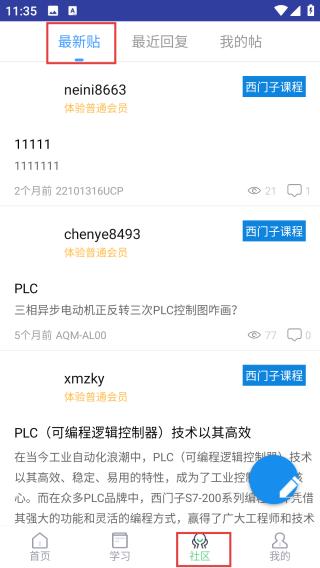 3、在社區界面,頂部有最新貼,最近回復、我的帖選項卡,展示的帖子由體驗普通會員發布。