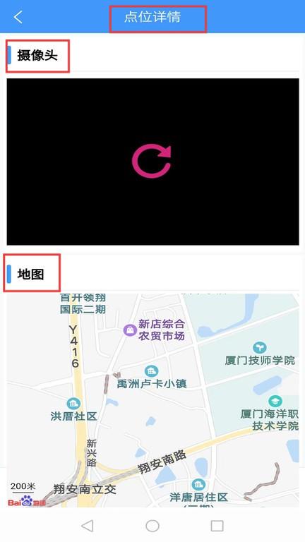 2、進入點位詳情模塊,切換攝像頭查看實時畫面,或通過地圖定位監測點地理位置,獲取場景數據。