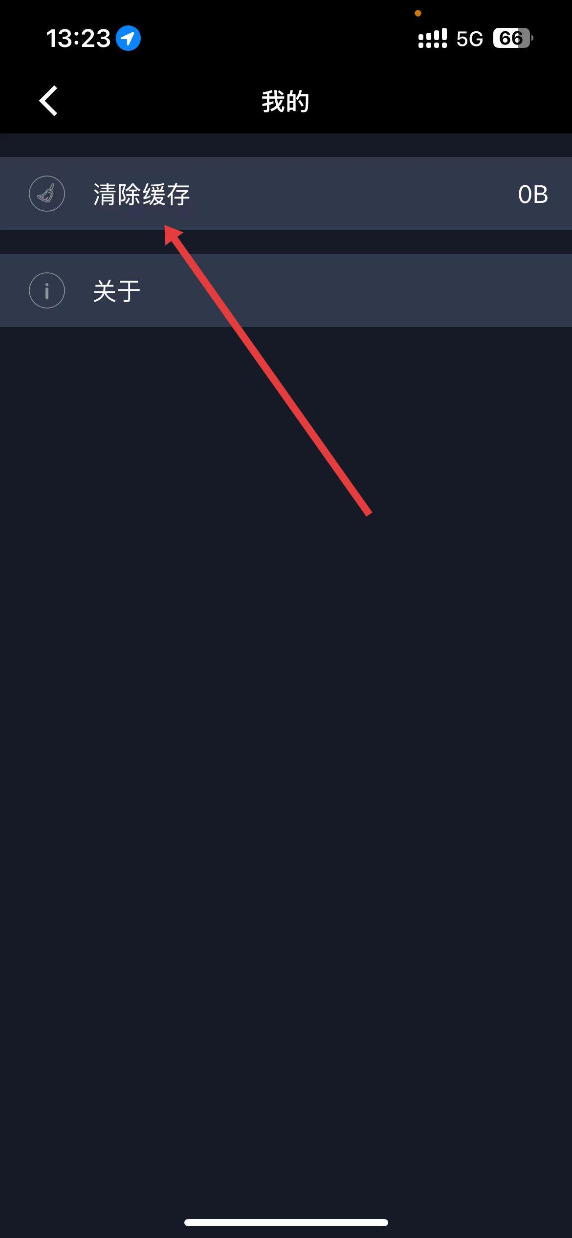 2、進入這個界面后,跟隨箭頭的指引,將視線移到左上方,點擊清楚緩存,跳轉到下一個界面。