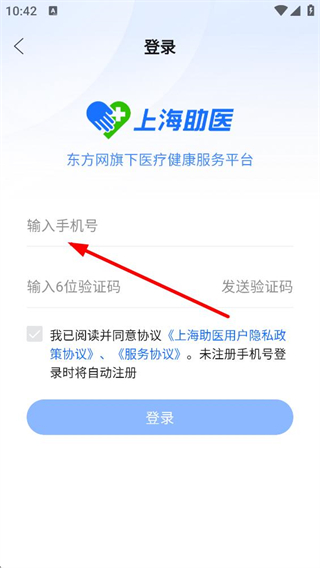 3、登錄界面,輸入手機號,獲取并輸入6位驗證碼,勾選用戶隱私政策和服務協議后即可登錄,未注冊手機號登錄時將自動注冊。