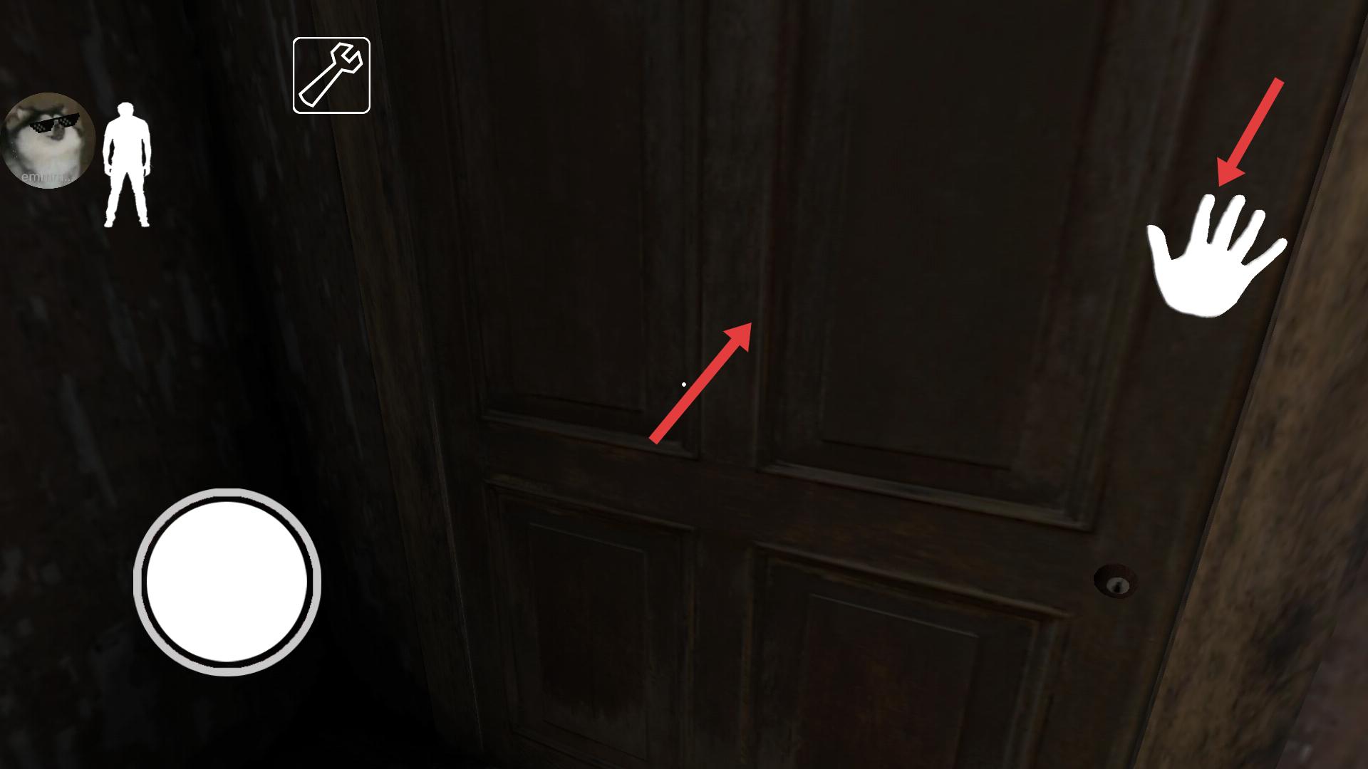 4、當遇到房門時,靠近房門,右側出現手掌圖標,點擊該圖標,可嘗試打開房門,進入新的區域,繼續探索游戲場景。