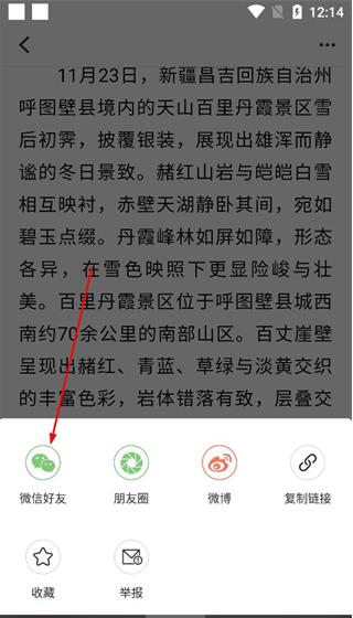 4、瀏覽完內容后點擊頁面下方的分享按鈕,選擇對應的分享渠道,即可將這篇文章分享給他人,也能使用收藏功能保存內容。