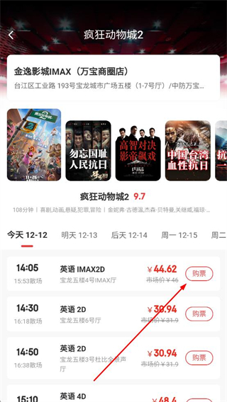 2、在電影列表頁選擇瘋狂動物城2,點擊進入該影片的詳情頁面,查看影片評分及上映信息。