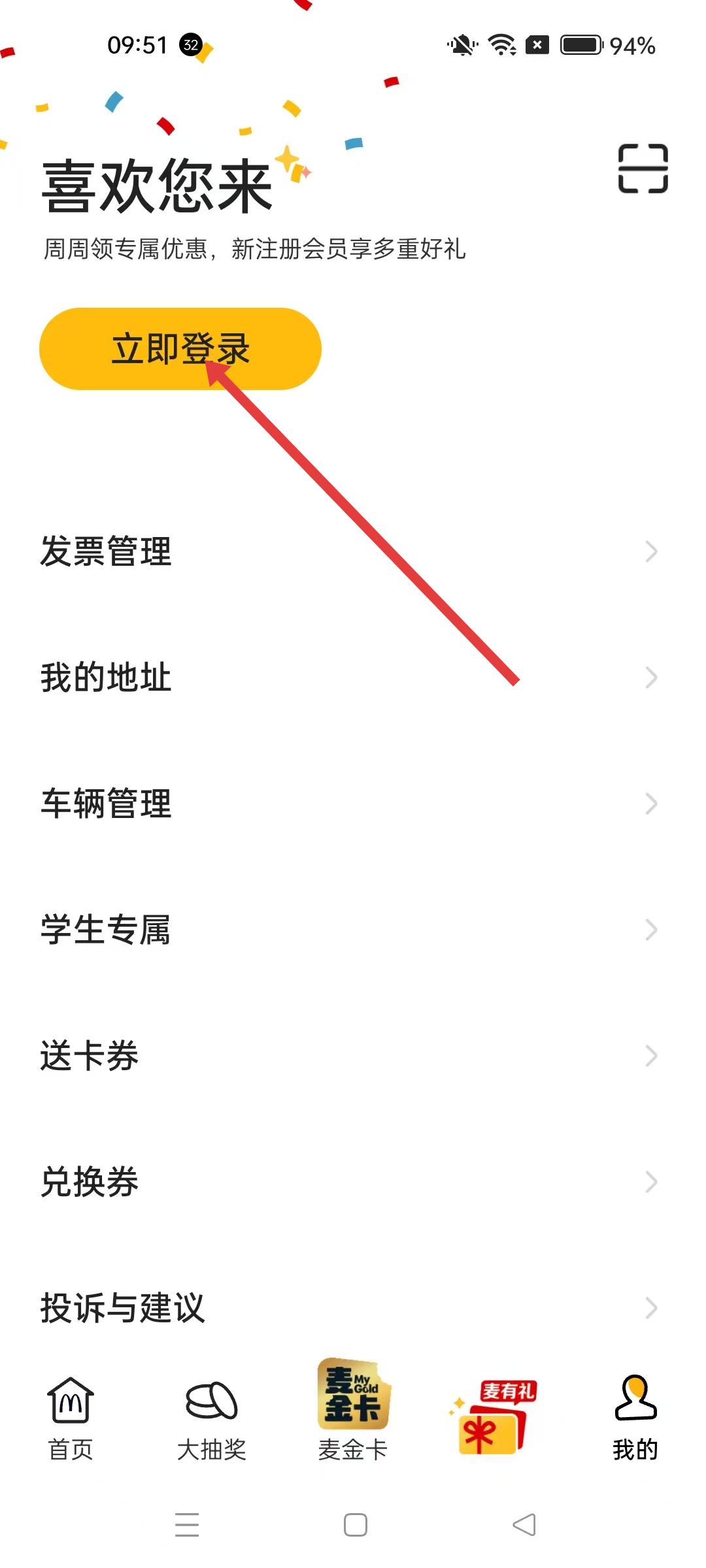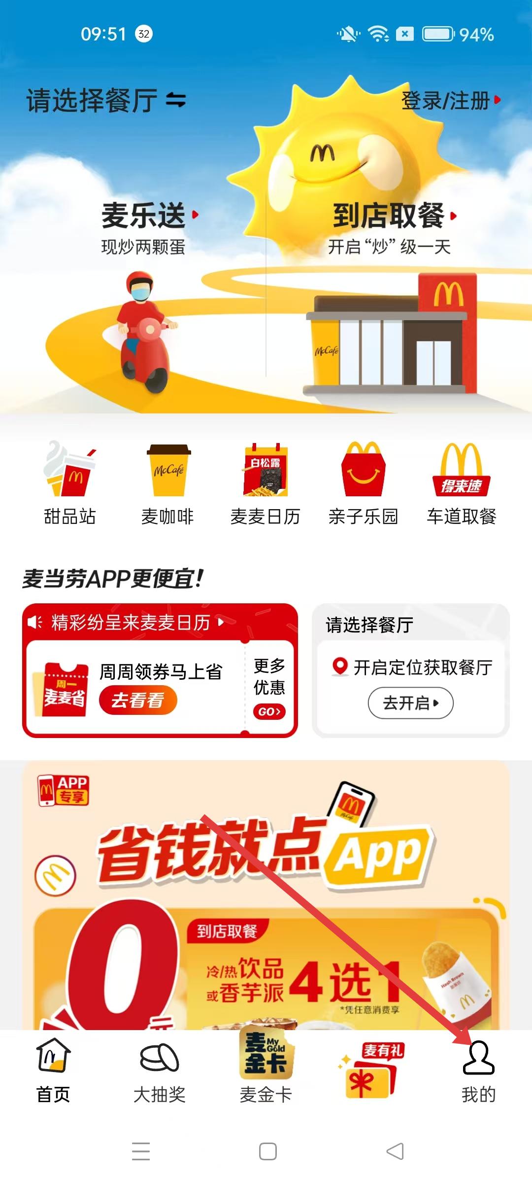 1、打開麥當勞APP后,首頁點擊右下角我的選項,進入個人頁面,開啟登錄流程。