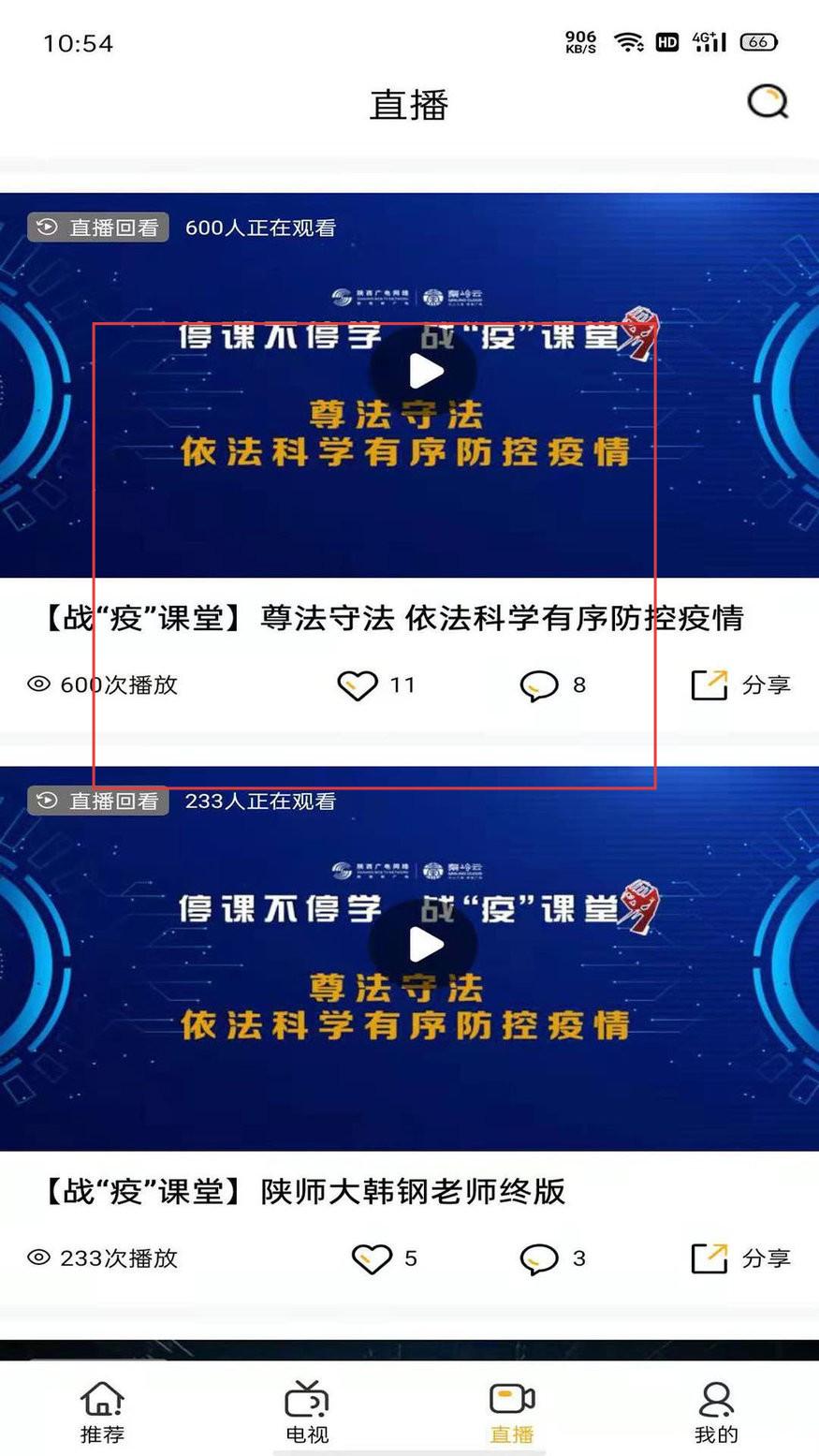 1、進入直播頁選戰疫課堂直播回看點播放按鈕觀看內容可點贊評論分享該直播。