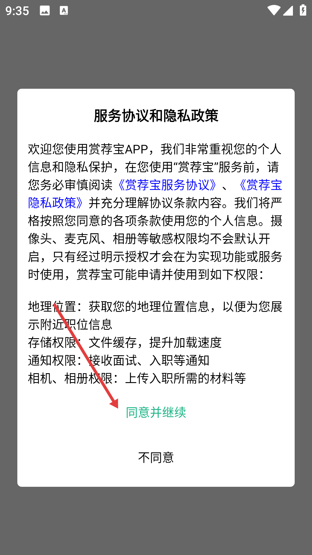 1、下載安裝完成后進入,需在用戶協議和隱私政策界面點擊同意,接受相關條款后才能進入應用。