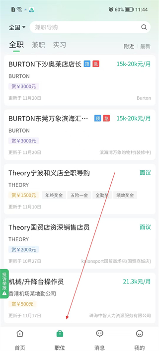 2、在職位頁面切換全職兼職等分類,瀏覽展示的崗位條目,查看崗位薪資與職責等信息,找到感興趣的崗位,準備進一步了解詳情。