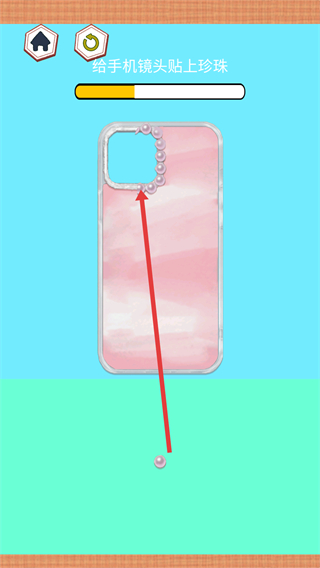4、最后給手機鏡頭部位貼上珍珠,小心操作,把珍珠依次貼好,為手機殼增添精致的裝飾,完成整個DIY過程。