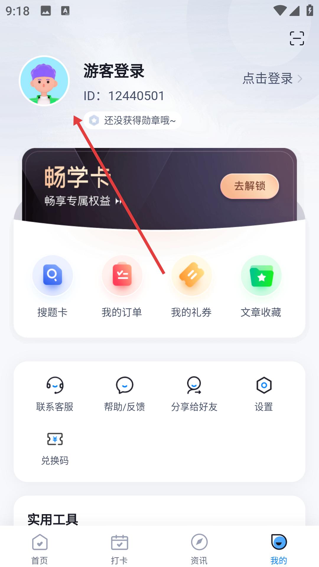 3、點擊右下角我的進入,點擊登錄,就可進行學習,還可以存檔等等,點擊購買暢學卡可以獲得更多權益。
