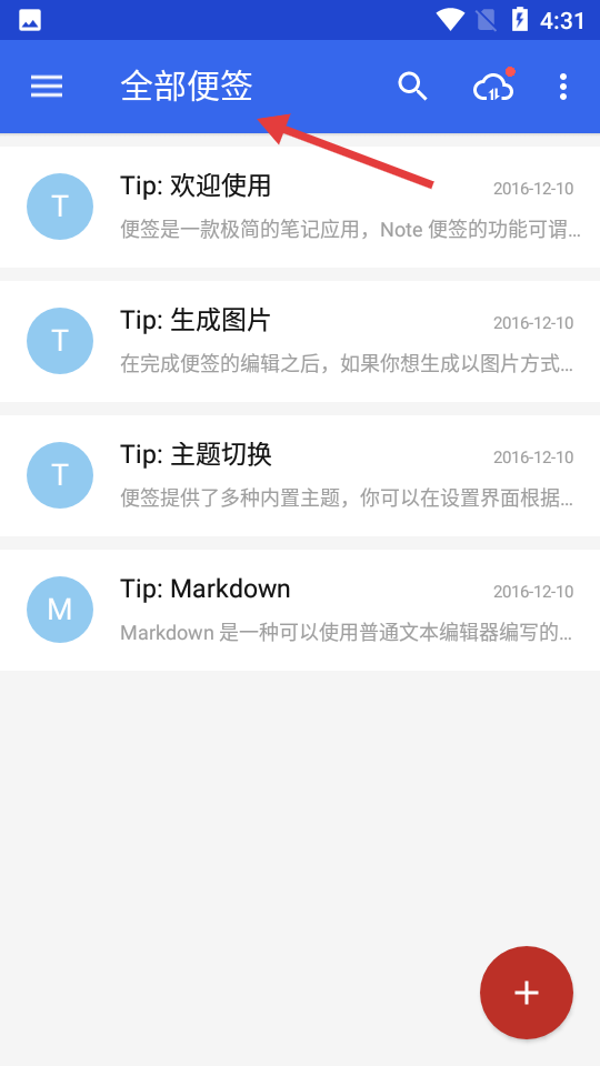 1、點擊全部便簽頁面,有序展示各條便簽,涵蓋使用歡迎語及功能操作提示,方便用戶快速了解應用基礎信息。
