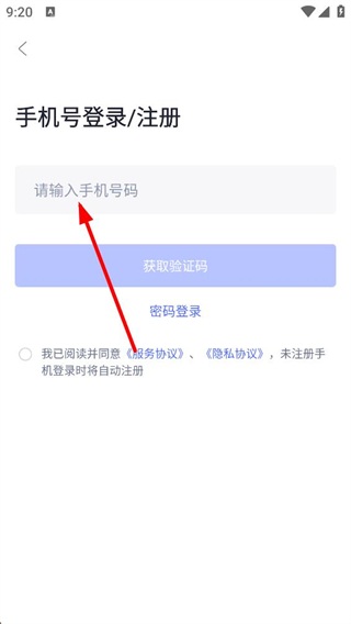 4、選擇手機號登錄注冊后,需對應輸入框填寫手機號碼,勾選協議后點擊獲取驗證碼,即可繼續完成登錄操作。