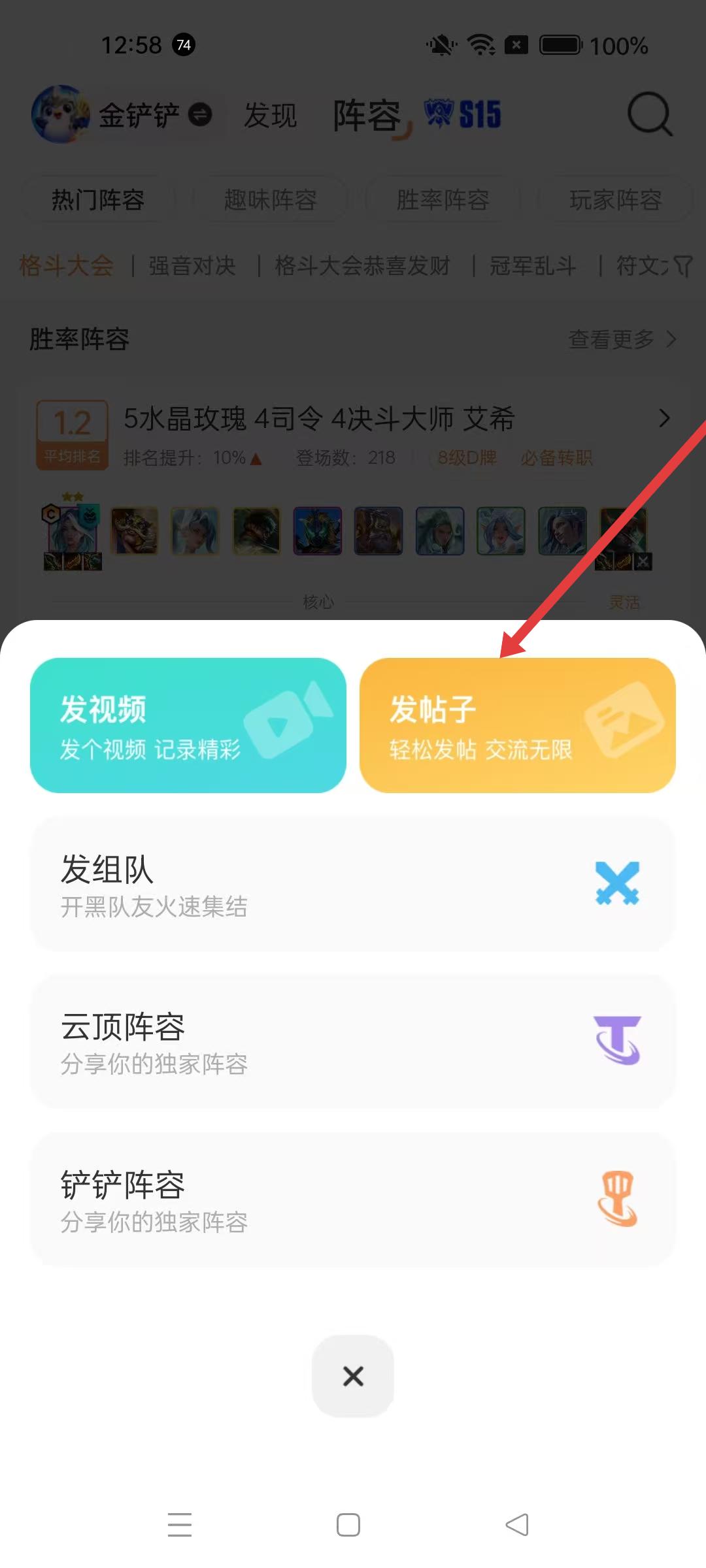 3、點擊創作按鈕,選擇發帖子選項,可進入帖子編輯頁面,準備分享游戲心得和經驗。