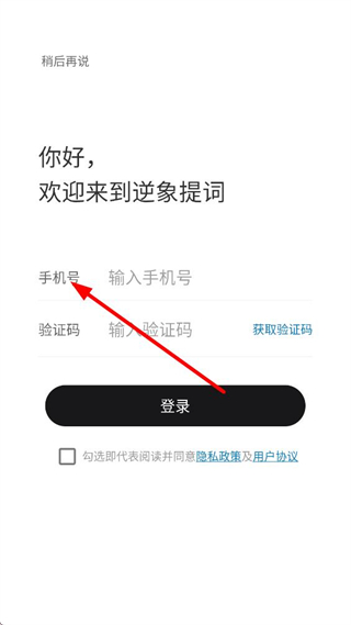 3、登錄界面,輸入手機號,獲取并輸入驗證碼,勾選同意隱私政策及用戶協議后點擊登錄,即可使用APP相關功能。