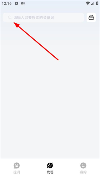 4、進入發現板塊,可在搜索欄輸入關鍵詞搜索內容,能發現更多提詞相關資源,豐富創作素材。