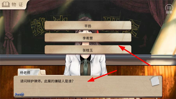 3、需確定案件的嫌疑人,在平揚、李?;?、張桂玉里選擇,通過推理找出真正的嫌疑人。