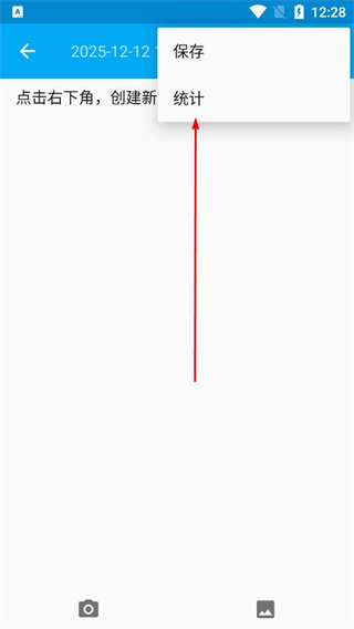 2、在隨手記頁面點擊操作選項展開菜單,選擇統計功能,進入便簽內容的統計頁面。
