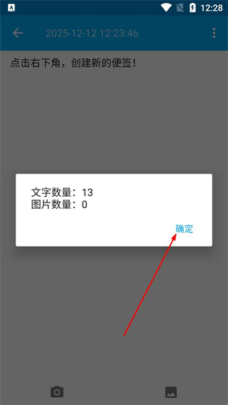 3、在統計頁面查看當前便簽的文字數量圖片數量等信息,確認內容的統計數據。