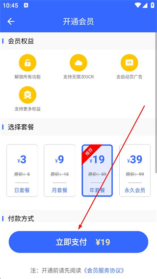 4、在開通會員頁面選擇年套餐等合適的會員套餐,確認套餐價格后,點擊立即支付按鈕,準備完成會員購買。
