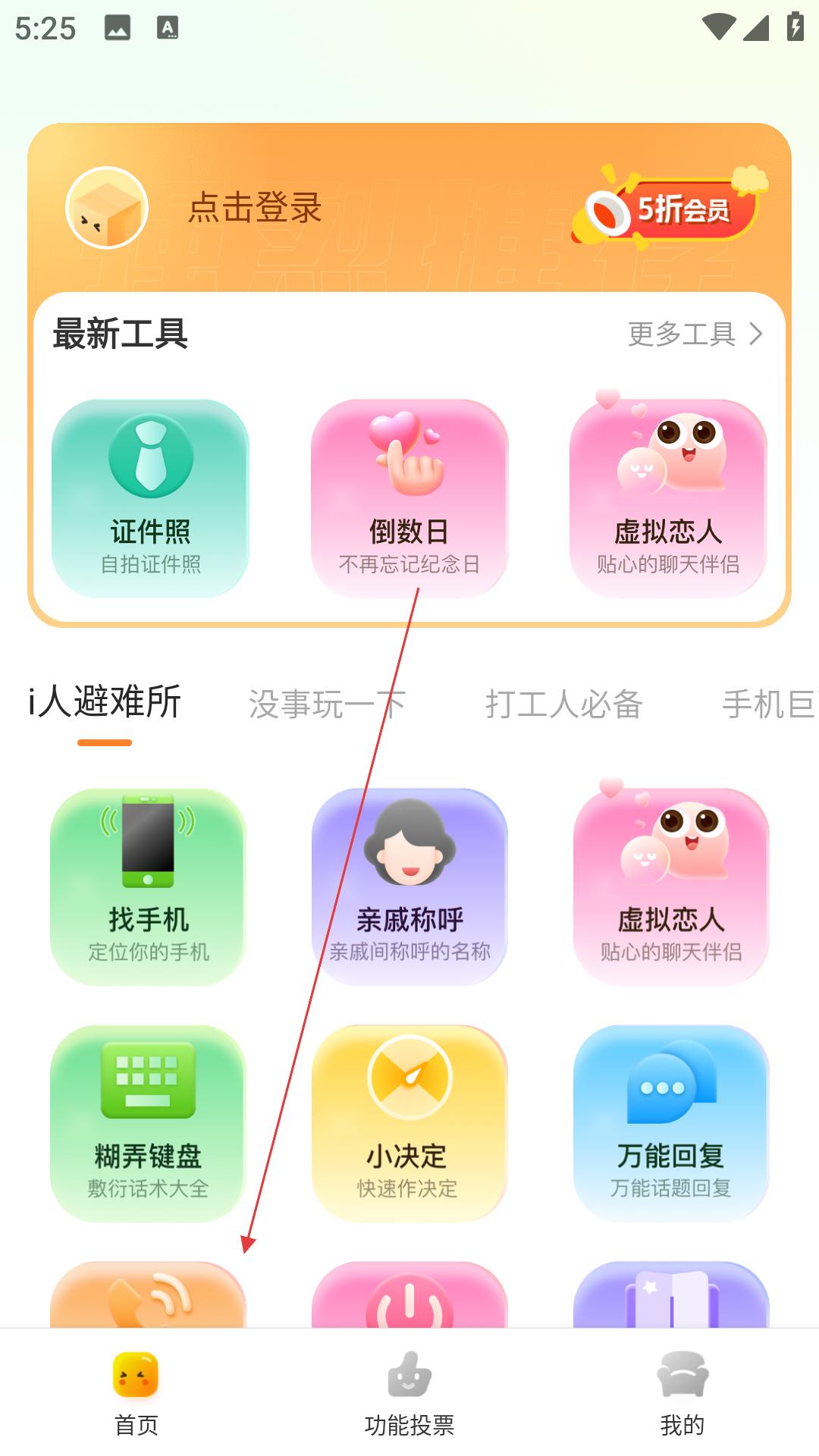 2、在i人避難所板塊,找到社恐測試功能并點擊,即可快速進入到測試題界面。
